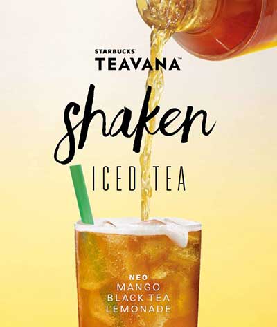 Αυτά τα light ροφήματα έρχονται για να δώσουν αστείρευτες νότες ευεξίας και αναζωογόνησης και μια συνολική εμπειρία παγωμένου τσαγιού Teavana® με την ποιότητα και δεξιοτεχνία που χαρακτηρίζει τα Starbucks. Δεν είναι τυχαίο ότι από πέρσι που προστέθηκαν στις δροσερές προτάσεις των Starbucks οι δύο κατηγορίες τσαγιού Teavana® Shaken Iced Tea & Teavana® Shaken Iced Tea Lemonade (με επιπλέον λεμονάδα), σε τρεις διαφορετικές ποικιλίες, πράσινο, μαύρο και με ιβίσκο τσάι, έχουν αγαπηθεί και προτιμούνται από πολλούς λάτρεις του τσαγιού.