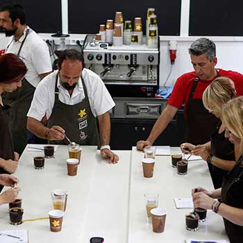 Παράλληλα, οι φοιτητές επισκέφτηκαν τους χώρους της παραγωγής του καφέ (καβούρδισμα – artisan roasting και τυποποίηση) όπου είχαν την ευκαιρία να δουν σε πραγματικό χρόνο τη λειτουργία των εγκαταστάσεων αλλά και να δουν από κοντά τι σημαίνει artisan roasting. Επίσης, ξεναγήθηκαν από τον κύριο Κουμανιώτη Νίκο, Διευθυντή Παραγωγής στις σύγχρονες εγκαταστάσεις, βλέποντας ολοκληρωμένη τη διαδικασία σε πραγματικές συνθήκες αλλά και στο εργαστήριο των τμημάτων έρευνας & ανάπτυξης και ποιοτικού ελέγχου όπου η λεπτομερής μελέτη γύρω από τον καφέ λαμβάνει χώρα, ξεκινώντας από την αξιολόγηση δειγμάτων καφέ (ωμοί κόκκοι), το καβούρδισμα τους, την παρασκευή του καφέ και τις μεθόδους εκχύλισης πριν φτάσουν στο ποτήρι του καταναλωτή. Μυημένοι πλέον στα μυστικά του καφέ, έζησαν την πραγματική 360ο εμπειρία Coffee Island.